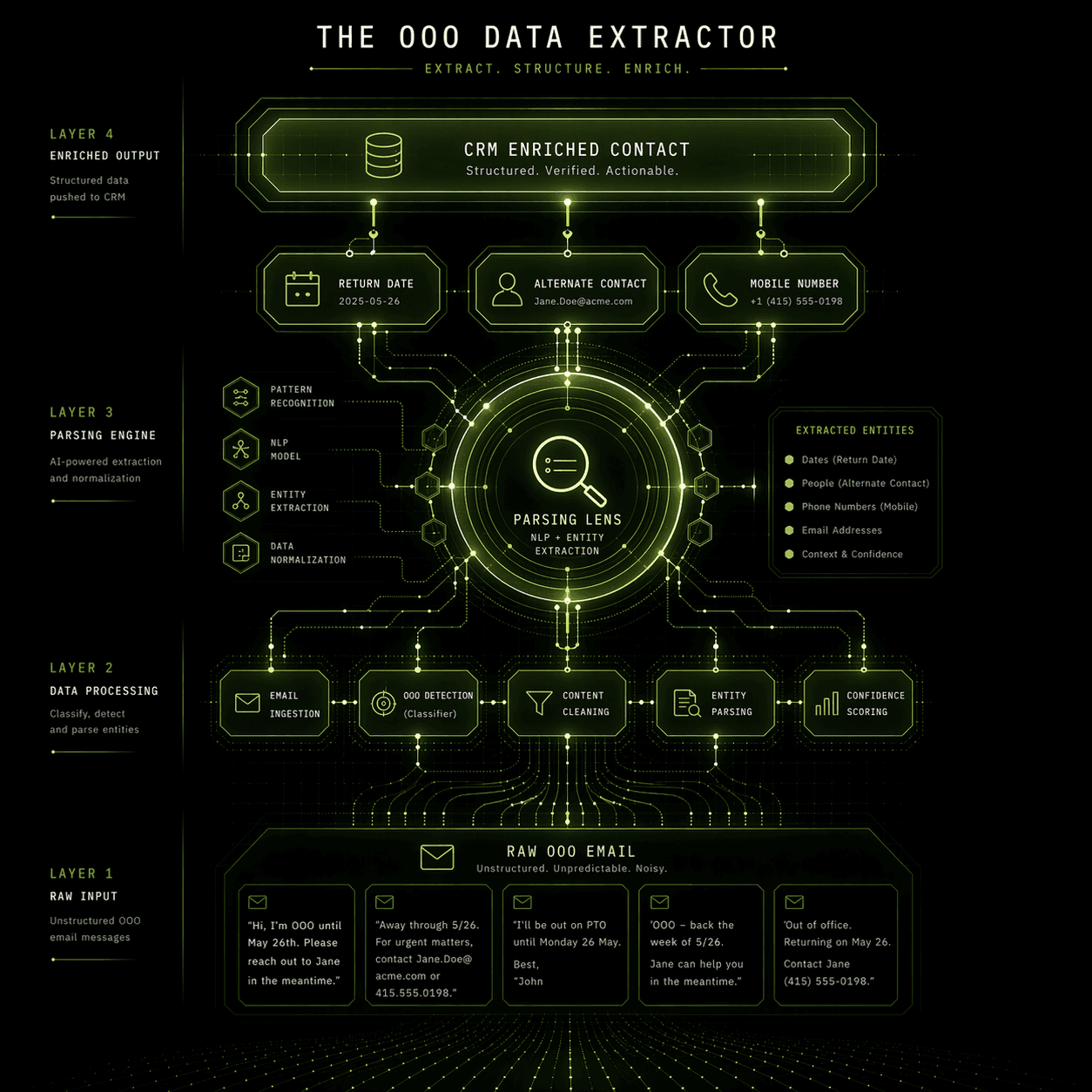 Every reply inbox in your outbound motion contains signal that should be feeding your CRM, your sequences, and your follow-up cadence. OOO replies are the most structured and highest-density example — but the same parsing architecture applies to positive replies, objection replies, and competitor mentions.