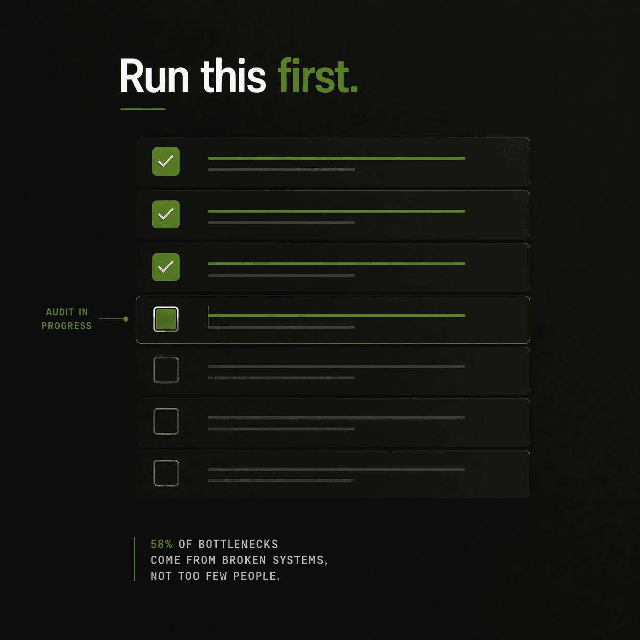 The urge to hire is often a symptom of "Capacity Blindness." As a founder, you see your team working late, you see emails going unanswered, and you see projects stalling in the "pending" stage. Your brain interprets this as a resource shortage. However, research into mid-market operational efficiency consistently shows that roughly 58% of operational bottlenecks come from inefficient systems, not a lack of people. When you add headcount to a manual, fragmented workflow, you don't get a faster workflow; you get a more expensive, more complex version of the same broken process.
