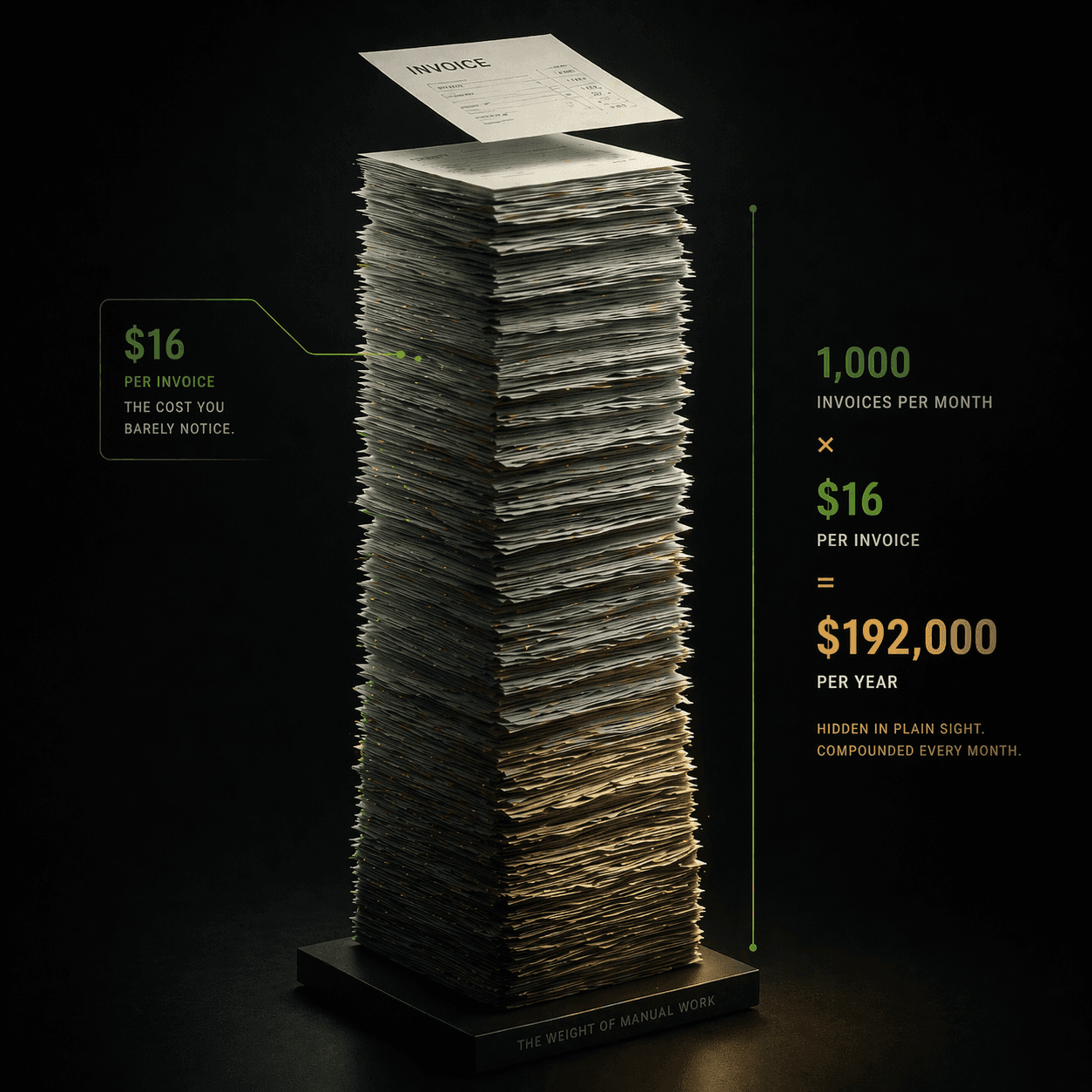 The manual processing of invoices is a silent tax on your business. You are paying $16 for a task that is worth $3. Every month you delay automation, you are essentially writing a check for thousands of dollars to "Operational Friction." In a high-interest, margin-compressed world, that is capital you cannot afford to waste.